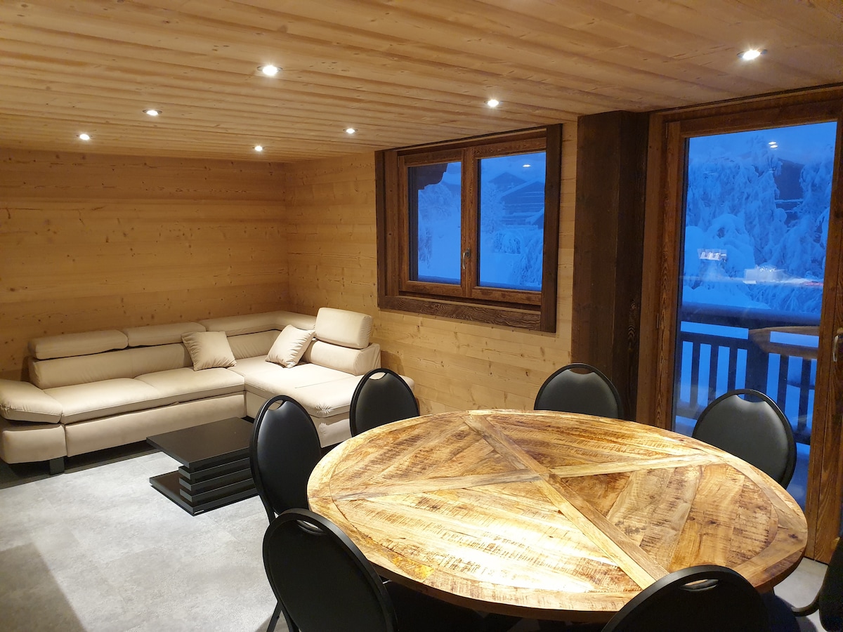 Appartament modern u komdu fil-Wied ta 'Abondance u Portes Du Soleil, ħames minuti mixi lejn iċ-ċentru tar-raħal, mixja qasira lejn il-ġiri tal-iskijjar lokali u rikba qasira bil-karozza tal-linja sal-gondola sa Torgen, Chatel jew Pre La Joux. Qrib iċ-ċentru tal-villaġġ u b 'aċċess faċli għal-Lag ta' Ġinevra u l-bqija tar-Rhone-Alps fis-sajf. WIFI, televixin, apparat li jdoqq id-DVDs bla ħlas (b 'għażla ta' DVD) u Chromecast.