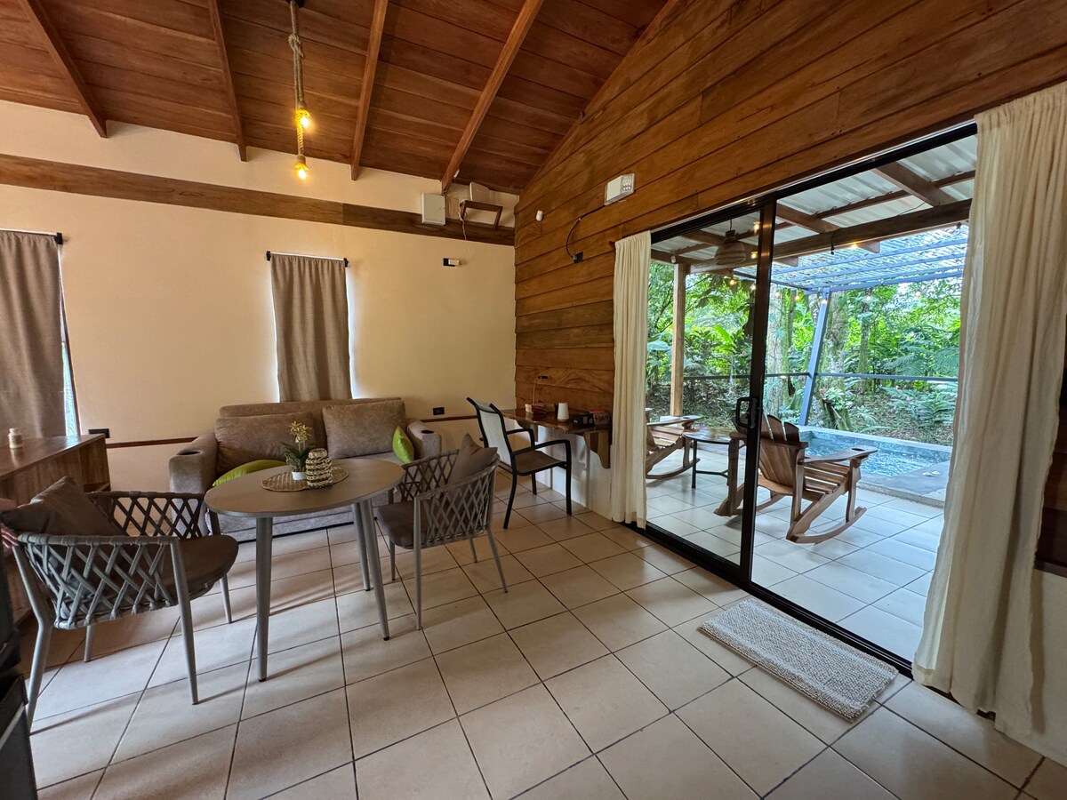 Post fejn toqgħod biex toqgħod 'il bogħod mir-rutina u tiltaqa' man-natura, għandu disinn modern b' disinn sħun, imdawwar bin-natura fejn tista' tara ħafna għasafar, veduta sabiħa tal-vulkan, gallarija, terrazzin, pixxina friska u jacuzzi privati. Post tajjeb għall-koppji, għall-ħbieb jew biex tkun tista' taħdem mid-dar. Tinsab strateġikament qrib l-attivitajiet ewlenin kollha u 2.5 km biss miċ-ċentru ta' La Fortuna u 1 km mill-Waterfall ta' La Fortuna.