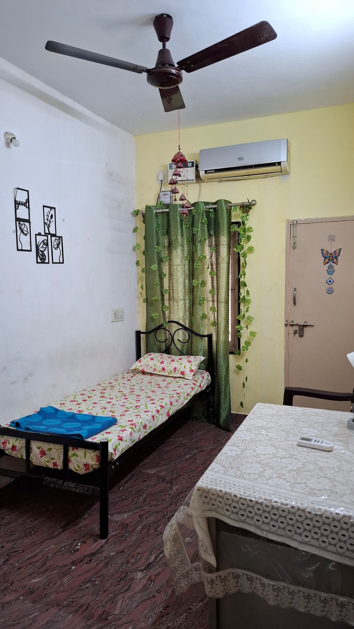 Add total guests while booking. ID proof must for all guests. Mordern & Fully furnished home, safe for family & single ladies. Located at Valsaravakkam. Surrounded by IT parks, hospitals & shopping malls. AC available the bedrooms & hall. Geyser in both the bathroom. High speed internet. PS: This is a home stay & not a hotel, kindly be considerate of my belongings. Bring ur toiletries. No unmarried couple. Airport: 15km. Railway station: 15km MioT hospital: 5km Ramachandra Hospital: 6km