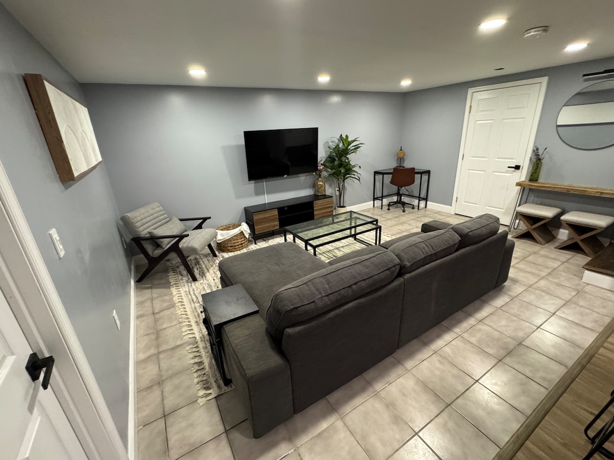 Merħba lill-ħaddiema li jsewwu l-qtugħ tad-dawl: mistieden wieħed. jew nirrakkomandaw lil min jorqod billejl għax aħna se nkunu ġejjin u sejrin mill-garaxx matul il-ġurnata u l-kelb se jinkebkeb..Ma nistgħux niggarantixxu kundizzjonijiet ta' rqad kwiet matul il-ġurnata Irrilassa f'loft privat u eleganti, 5 minuti biss 'il bogħod mix-xtut ta' Chesapeake u 10 minuti 'l bogħod minn Solomons Island u Calvert Cliffs. Gawdi l-post privat tagħna li jinsab fuq garaxx b'aċċess privat għall-bajja, WiFi veloċi, Smart TV u affarijiet li jagħmluk tħossok komdu.
