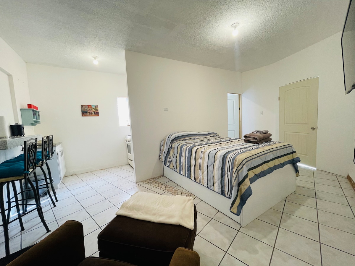 Este lugar único tiene un estilo propio. Es una construcción completamente nueva. Espaciosa estancia para 2 personas cómodamente y siempre puede acomodar a un tercero en el área del sofá. Tiene una mini cocina completa, fregadero, baño, refrigerador y wifi gratuito. El espacio también está equipado con una cámara exterior de inteligencia artificial de última generación para su seguridad y tranquilidad. Venga y sea nuestro huésped y deléitese con el estilo Namiquipa. Esperamos su estancía.