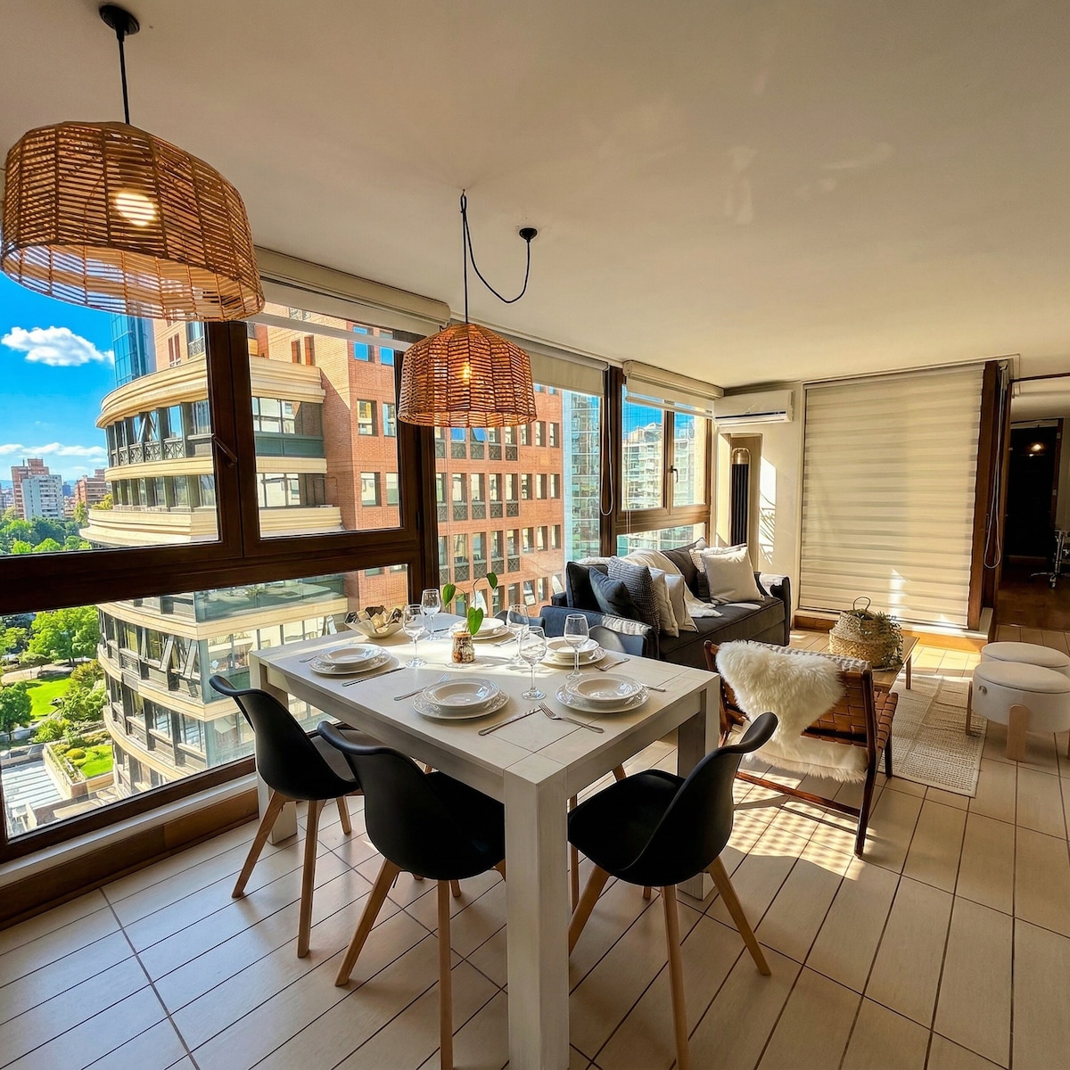 Appartament spazjuż u modern b'parkeġġ, Wi-Fi b'veloċità għolja u terrazzin, ideali għall-familji, għall-gruppi jew għall-vjaġġi tax-xogħol. Jiflaħ sa 5 persuni, bi spazji komdi u mqassma tajjeb. Post eċċellenti ftit passi biss mill-istazzjon tal-Metro Manquehue, mis-supermarkets, mir-ristoranti u mis-servizzi f'Las Condes.