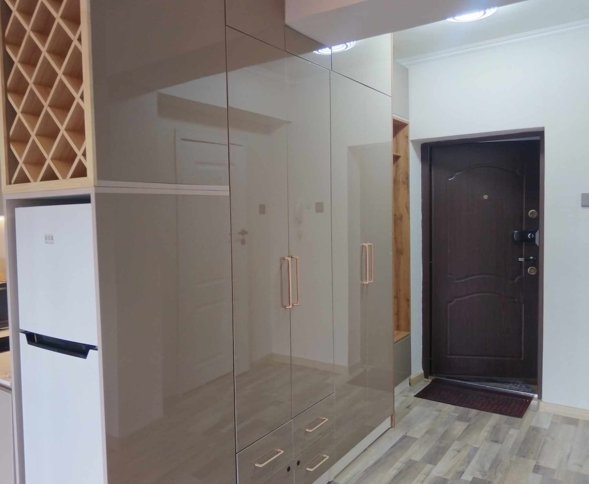Dan l-appartament ta' studio komdu jinsab fit-triq ewlenija ta' Ulaanbaatar, qrib id-dipartiment ta' Gandan Monastery u Ulaanbaatar. Appartament fi studio ta' atmosfera li għadu kif ġie rranġat, b' stil minimalist u rilassanti bi kċina u kamra tal-banju separati se jilqgħuk. Iż-żona ewlenija għandha kamra tas-sodda b' sodda ta' daqs queen, għata tal-qoton u mħaded komdi ħafna biex ittaffi l-eżawriment tiegħek għal vjaġġ fit-tul. Hemm ukoll post fejn toqgħod bilqiegħda b' serħan is-saqajn u TV ta' 43 pulzier.