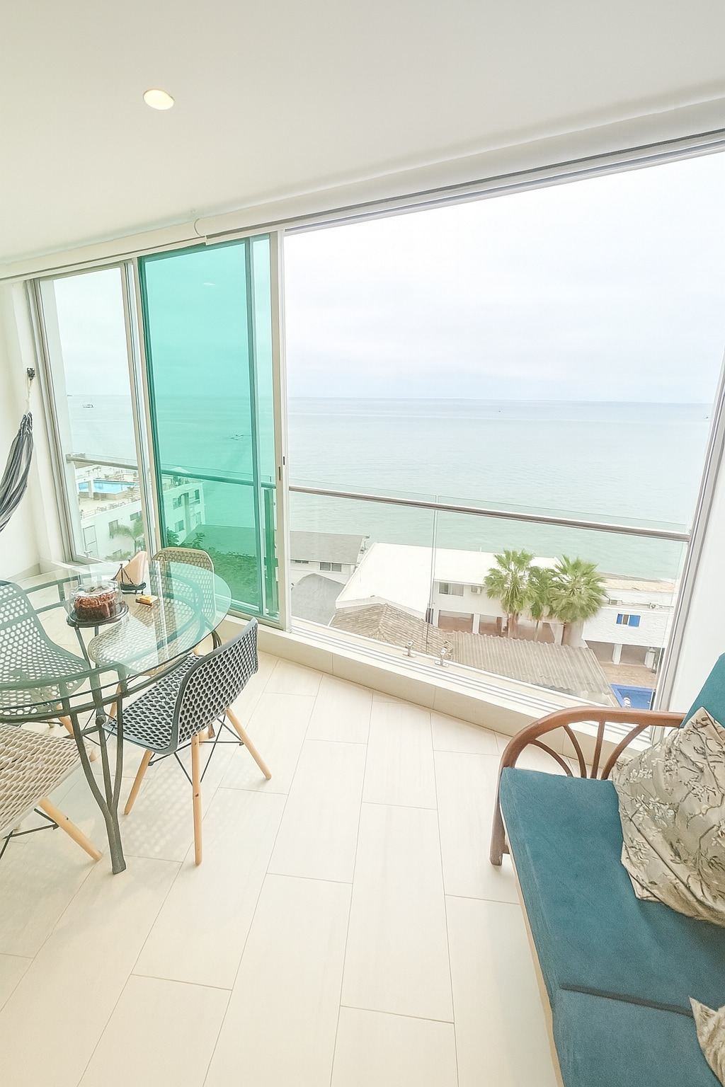 Appartament komdu fis-7 sular b' veduti spettakolari tal-oċean, bajja sabiħa, kompletament mgħammra. Għandna 3 ikmamar tas-sodda, 2 ikmamar tal-banju sħaħ b' ilma sħun, arja kkundizzjonata, kamra tal-ikel, salott bis-sufan u t-TV, WiFi, friġġ, kċina sħiħa, fann, gallarija b' veduta mill-isbaħ tal-oċean, 2 pixxini għat-tfal, pixxina waħda għall-adulti. Aħna ninsabu fis-settur ta' Milina. Il-kondominju jissejjaħ Torre Oceánica u aħna blokka waħda 'l bogħod mill-Hosteria el Faro u 4 blokki' l bogħod mis-Supermaxi.