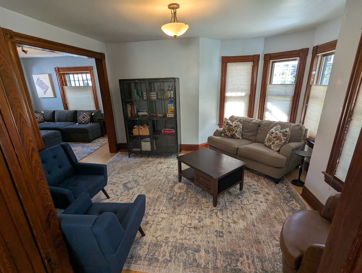 Ċentru ta' Burlington! Appartament b' kamra tas-sodda waħda kompletament rinnovat f' dar storika tal-1845. Kċina ġdida. art miftuħa, futon komdu ħafna jekk teħtieġ sodda żejda. Kamra tal-banju b' sensazzjoni moderna mwaħħla ma' banju tas-saqajn klassiku. Kumditajiet ġodda fjamanti b' sensazzjoni storika: wifi b' veloċità għolja, televixin 65" , art tal-injam iebes minn barra, AC u kontrolli tat-tisħin. 7 minuti mixi sal-Knisja St. Qrib l-UVM u l-Kulleġġ Champlain. Post wieħed għall-parkeġġ barra mit-triq.
