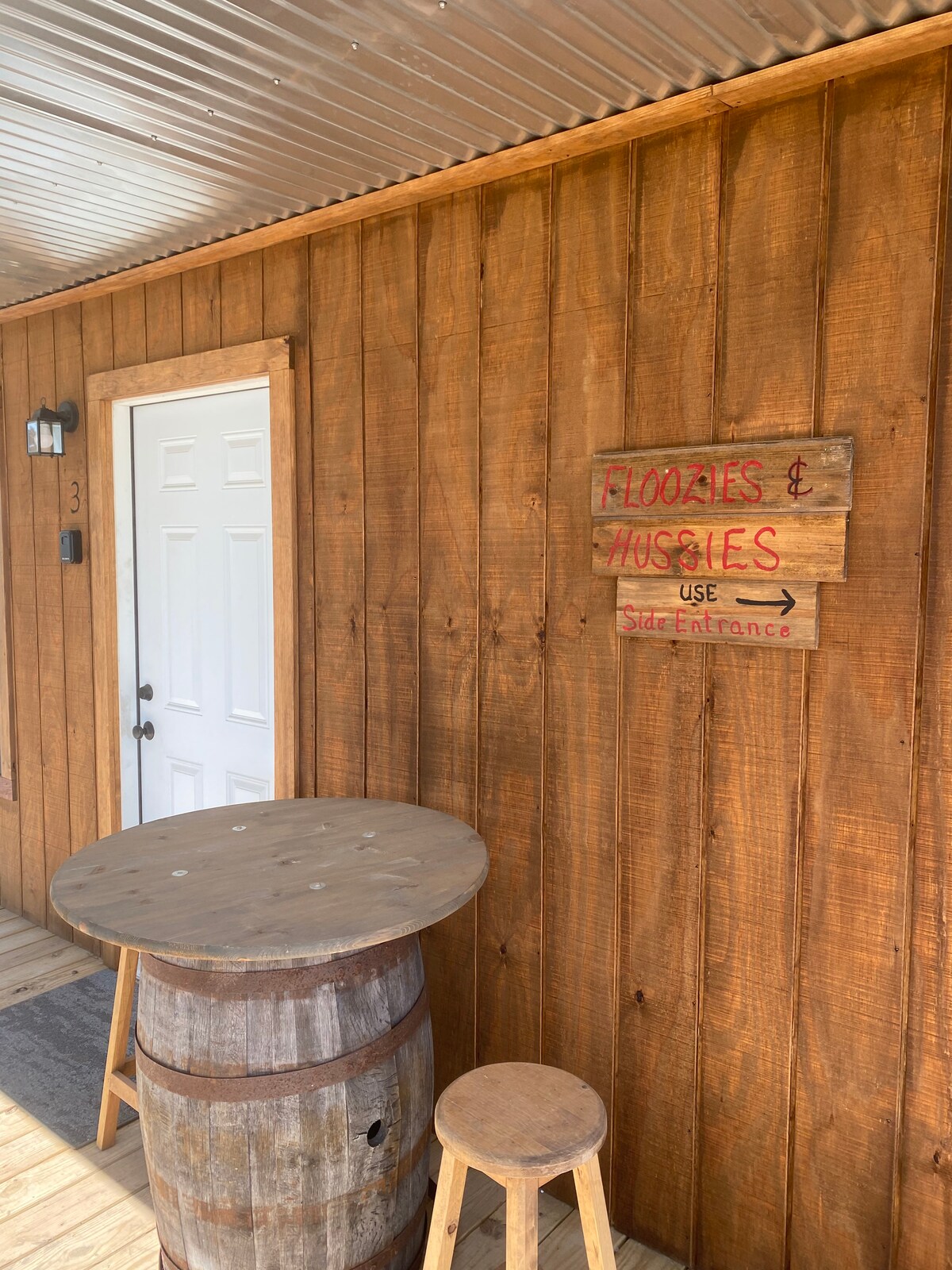 L-istabbli 1 hija kabina taħt is-sular li hija dekorata bħala stabbli inkluż gabbana b 'sodda doppja ġo fiha. Hemm saddle li tista 'tirkeb ħdejn il-waqfa. Hemm swing fuq il-porch ta 'quddiem għalik biex tgawdi waqt li tara l-annimali fiż-żoo tal-pets jew fiċ-ċriev li spiss jirgħu fuq 109 ettari tagħna. Il-wifi huwa fornut kif ukoll borma tal-kafè u friġġ żgħir. Ipparkja ħdejn il-kabina tiegħek. Ħu gost tilgħab it-toqba tal-qamħ, il-magna tal-parties tal-foam u ż-żoo tagħna waqt li żżur.