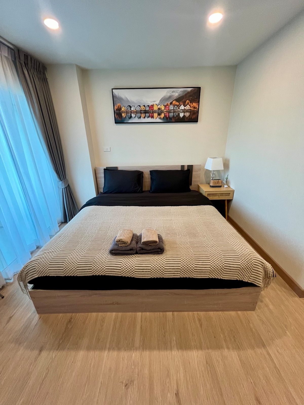 Cozy Family-Friendly Apartment in the Heart of Bangsaen. Key Features: 1 Cozy Bedroom and 1 Spacious Common Room with a sofabed for 2 extra guests. Well-equipped Kitchen with all utensils you'll need for a convenient and comfortable meal, with selection of snacks, including aromatic Vietnamese coffee from beloved brand. Prime Location – Just a short walk to Won Beach for sun, sea, and sand, located near the side gate of Burapha University, easy to explore the campus or visit university events.