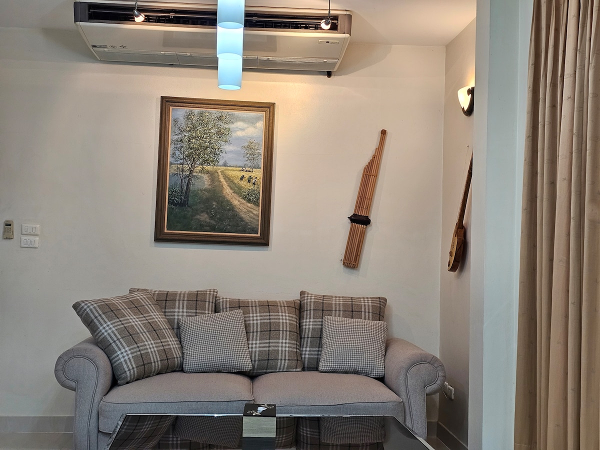 Se tirrilassa f' salott kalm, nadif u delluż. Salott wieħed, 2 kmamar tas-sodda, 2 kmamar tal-banju, kċina waħda. Għandna 2 air conditioners, sufanijiet, TV, friġġ, microwave, magna tal-ħasil. Madwar id-dar hemm parkeġġ għal 2 karozzi u bitħa quddiem id-dar. u ż-żona wara d-dar Hemm ċint madwar id-dar għall-privatezza. 25-30 minuta biss minn Chang International Circuit ,Motocross Race Track u Buri Ram Airport u Qrib is-supermarket biss 5 minuti.**M' hemm l-ebda servizz ta' ġbir.