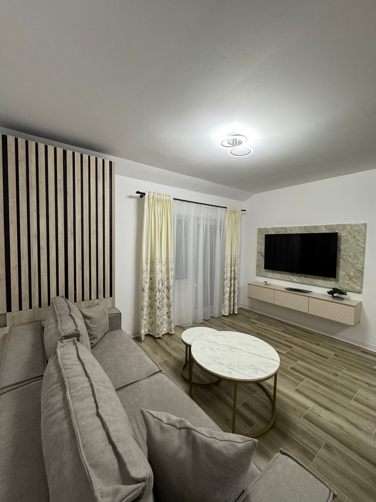Newly built flat situated on the 1st floor of a new modern building within walking distance to local markets, downtown, supermarkets and pharmacy. There is a bus and taxi station about 500m, we offer 1 dedicated parking spot. You will find a nice view of the mountains. With the latest appliances, high speed internet, smart TV we guarantee an enjoyable experience. As much as possible we strive to offer you everything you need to feel good and spend the most beautiful moments in our home.