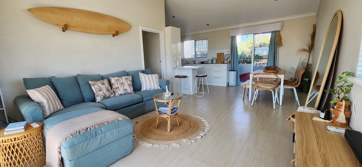 Appartament b 'żewġt ikmamar tas-sodda li għadu kif ġie rinnovat, imdawwal u modern. Jinsab 300m 'il bogħod mill-bajja ikonika ta' Scarborough. Ċentrali għal kafetteriji, bars u ristoranti - kollha f 'distanza faċli bil-mixi. 50m 'l isfel fit-triq hija Lady Latte Cafe, kafetterija lokali popolari. L-appartament għandu żewġ żoni tal-għajxien fuq barra, waħda b 'doċċa sħuna / kiesħa fuq barra, it-terrazzin l-ieħor b' veduti elevati lejn il-Lvant fuq l-uċuħ tas-saqaf. Gawdi BBQ mal-ħbieb / familja fuq it-terrazzin b 'sufan tal-ikel. Il-propjetà hija mgħammra b 'wifi u Foxtel.