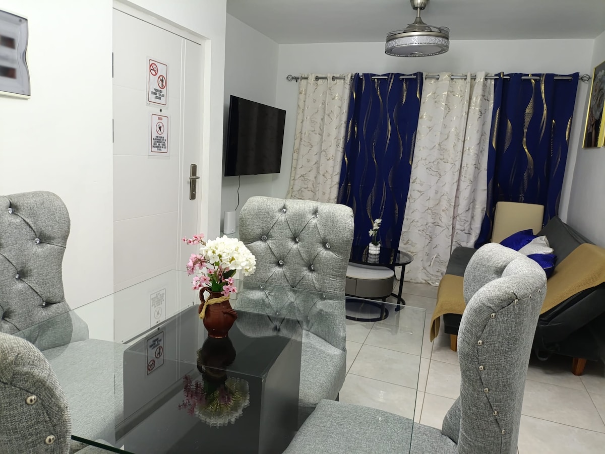 🏠 Appartament komdu ġewwa Ciudad Juan Bosch. Gawdi appartament komdu b' 2 ikmamar tas-sodda b' arja kkundizzjonata, kamra tal-banju, kċina mgħammra, salott, kamra tal-ikel, TV fis-salott u fil-kamra tas-sodda ewlenija. Għandha wkoll magna tal-ħasil, dryer, inverter, ilma sħun, gass komuni, Wi-Fi, elettriku 24 siegħa kuljum u sigurtà 24 siegħa kuljum. Ideali għal żjarat kwieti u siguri.