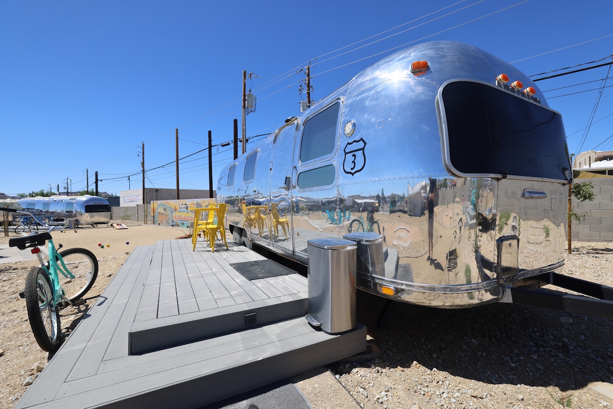 Tin Can Alley, li tinsab fiċ-ċentru storiku ta' Kingman, Arizona fuq ir-Rotta 66 famuża, hija oażi ta' Airstreams vintage modernizzata biex toffrilek esperjenza ta' boutique unika. Ftit passi 'l bogħod mill-pubs, ir-ristoranti, il-ħwienet, il-ferroviji u l-mużewijiet, se tgawdi l-veduti u l-ħsejjes tar-Rotta. Ħejji ruħek biex tesperjenza magni tal-ferrovija, karozzi klassiċi, veduti storiċi, nies amikevoli, murali u neon f' din il-belt ferrovjarja tal-1882!