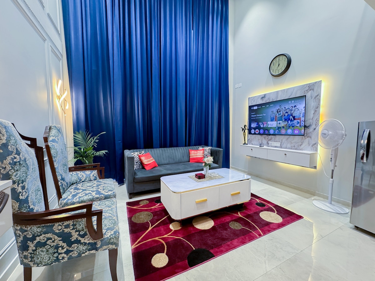 1BHK mill-isbaħ, iddisinjat perfettament għall-koppji, fuq ċentru kummerċjali vibranti ta' Gurgaon. Gawdi ż-żona tas-salott eleganti b' kotba u logħob, kċina mimlija u kamra tas-sodda sabiħa bit-TV/OTT. Aħdem jew irrilassa bi stazzjon tax-xogħol apposta u wifi ta' iktar minn 200 Mbps. Idħol fil-gallarija b' veduta miftuħa biex tara l-orizzont. Il-post strateġiku tagħna qrib NH48, Dwarka Exp, SPR, Amex. Air India, TCS u DLF Corporate Green joffru parkeġġ kopert bla ħlas. L-inox, il-pubs u r-ristoranti jinsabu pass 'il bogħod. Ikseb żjara aqwa grazzi għal Żidiet Romantiċi!