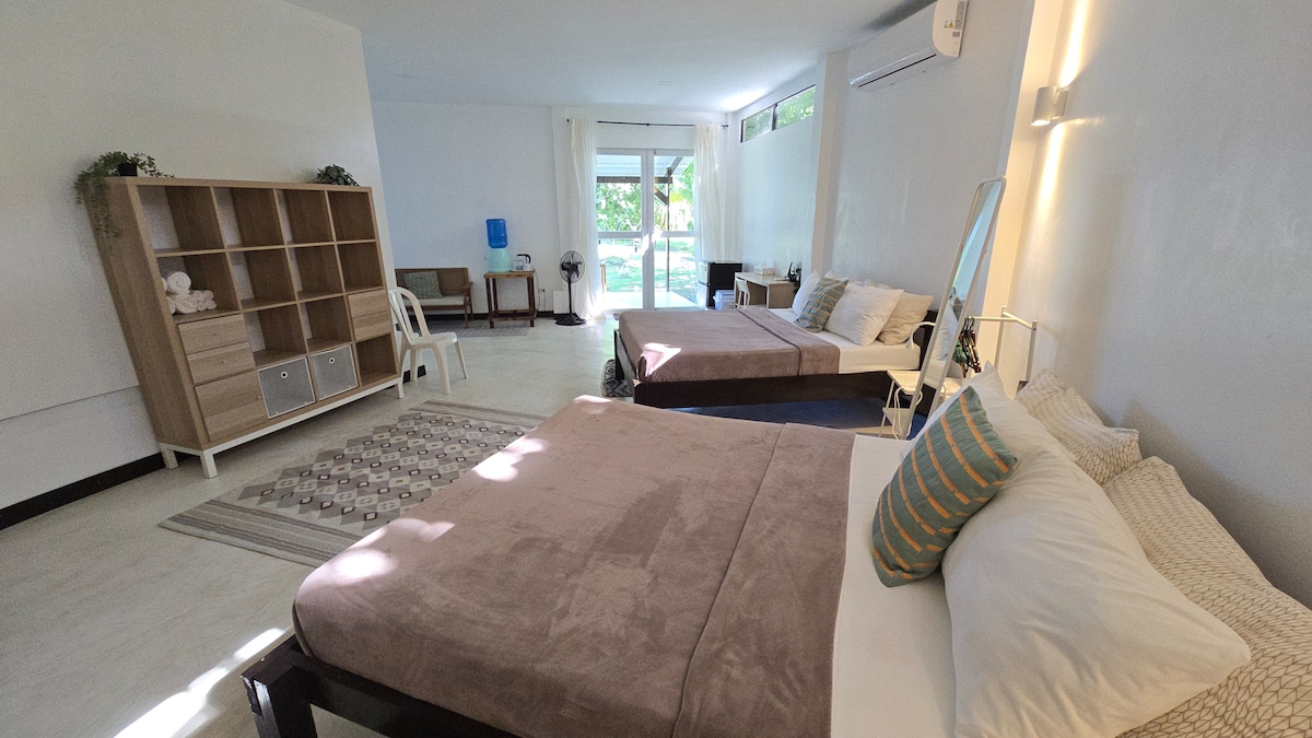 Enjoy a morning swim at the nearby beach, just 2 minutes away, and watch the beautiful sunrise over the palm trees. Start your day with a sunny day on your private balcony, then relax with Starlink high-speed Wi-Fi and cool air conditioning. Perfect for couples and digital nomads. ※ This property is currently listed for sale. It is currently operating normally and your stay is uninterrupted. Please contact us if you are interested in purchasing. Total 14 rooms Location: Malinao Street, GL