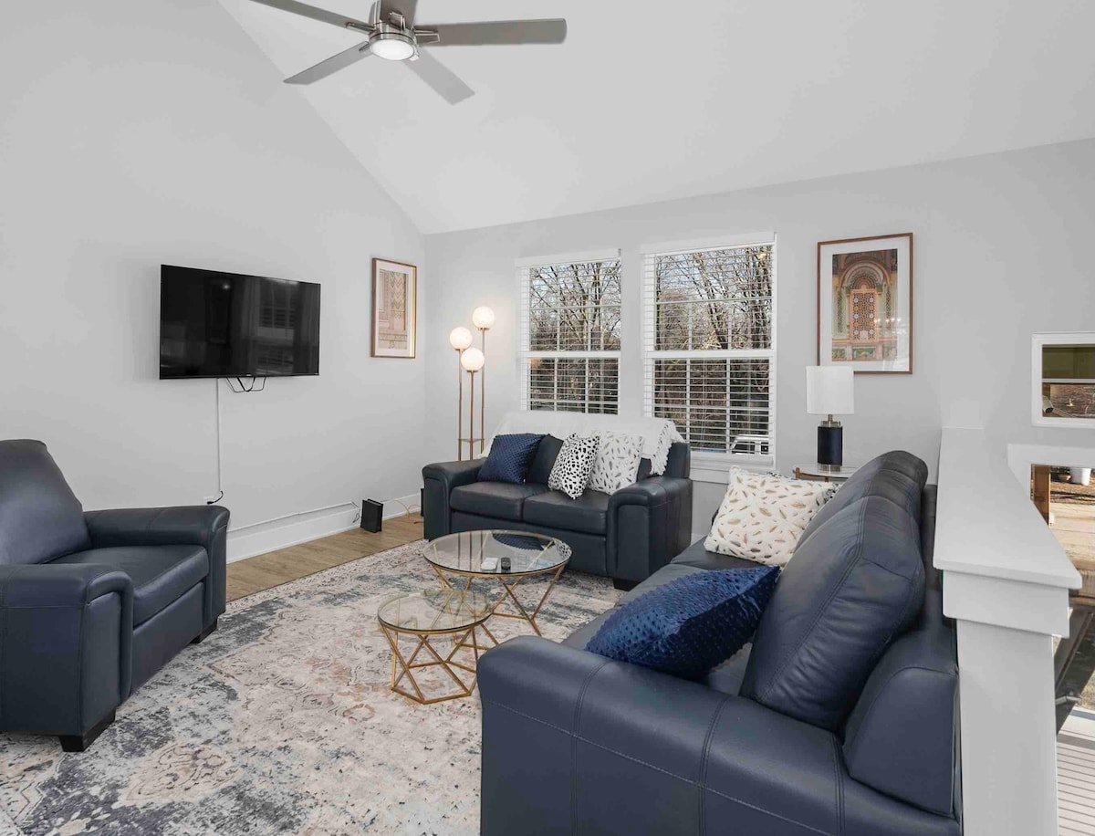 XLG 800 pied kwadru Is-Suite tad-Disinjaturi hija sabiħa u komda fil-viċinat sigur tal-Kulleġġ William Jewell 22 minuta sal-Ajruport ta' KC, 17-il minuta sa Worlds of Fun, u 20 minuta sal-istadji Chiefs & Royals. B' soda, provvisti tal-arti, logħob u smart TV fuq skrin ċatt. Jinkludi kċina kompluta, apparat żejjed, oġġetti tat-tisjir, daħla privata, lożor tad-disinjatur u prodotti tal-indafa personali tal-ispa. 2 Sodod queen, pack-n- play. Blokka waħda għal ristoranti mill-isbaħ Liberty Square, xiri, birrerija, antikitajiet u Suq tal-Bdiewa