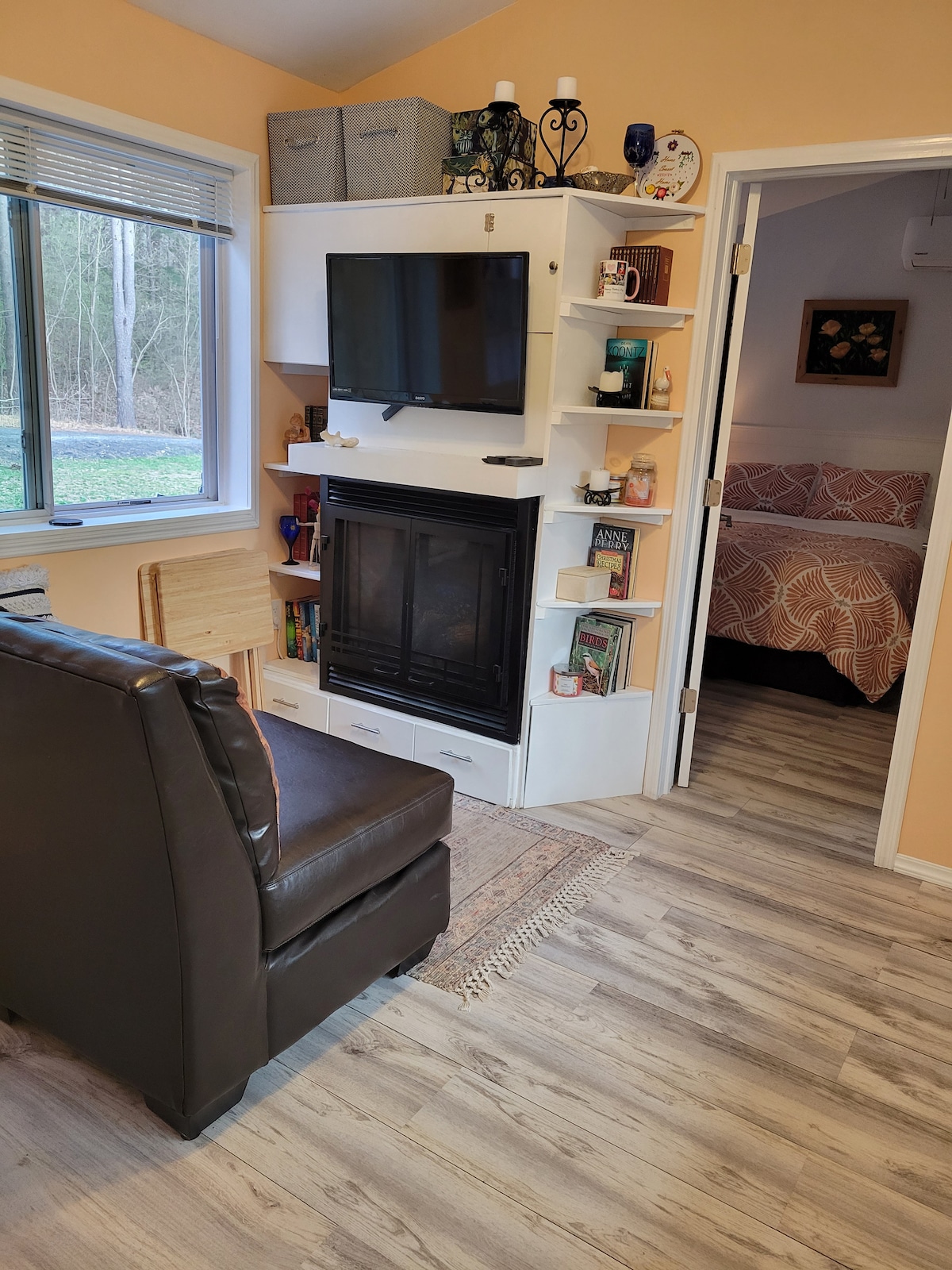 March-April midweek special: Bottle of prosecco, robes/slippers, s'mores. Boutique-luxe tiny home with private hot tub, firepit, and dreamy loft lounge. Plush queen bed, full kitchen, and curated charm throughout. A peaceful & private oasis, yet just a 2-min walk to Chatham’s Main St. lined with restaurants, brewery, shops & theater. The perfect upstate NY getaway for couples—hike, visit galleries, stroll to dinner, or unwind in your own private spa oasis @artparkhomes.