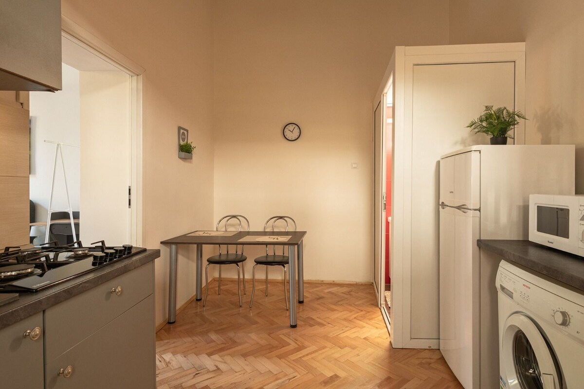 Appartament Vintage Studio fil-qalba tal-belt b 'park, ċentru kummerċjali, kafè tajjeb u stazzjon tal-karozzi tal-linja fil-qrib. L-appartament jinsab f 'bini ġdid, b' lift. Self checkin huwa disponibbli wkoll għall-klijenti tagħna. L-ambjent huwa amikevoli ħafna bil-possibbiltà ta 'parkeġġ bil-ħlas Kemm jekk qiegħed hawn biex tirrilassa jew biex taħdem, dan il-post se jakkomoda perfettament kull ħtieġa tiegħek!