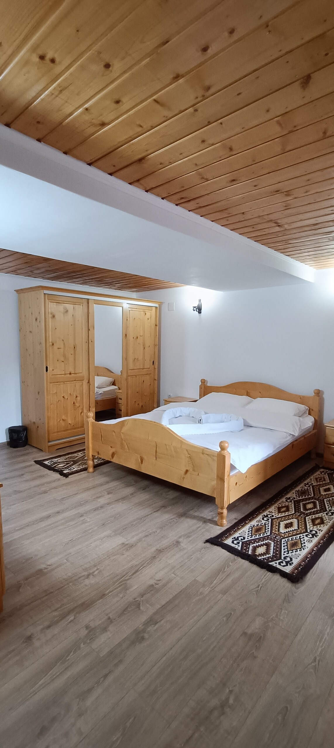 AQRA QABEL TIBBUKKJA: L-aħħar 7 km jinsabu fuq toroq bil-ħmieġ, karozzi żgħar jaħdmu imma ftit itwal -SUV/4x4 suġġeriti fix-xitwa. Il-kabina ċkejkna tagħna għal tnejn hija moħbija fin-natura, mingħajr ġirien, biss veduti tal-muntanji minn ħajt tal-ħġieġ. Gawdi kafè fuq il-gverta, tgħaddis fil-hot tub (200 lei/żjara), jew iljieli komdi taħt l-istilel. Kċina kompluta bil-forn, bil-forn, bil-kafè u bit-te. Id-dettalji taċ-checkin u l-kodiċi tal-lockbox se jintbagħtu permezz tal-messaġġ