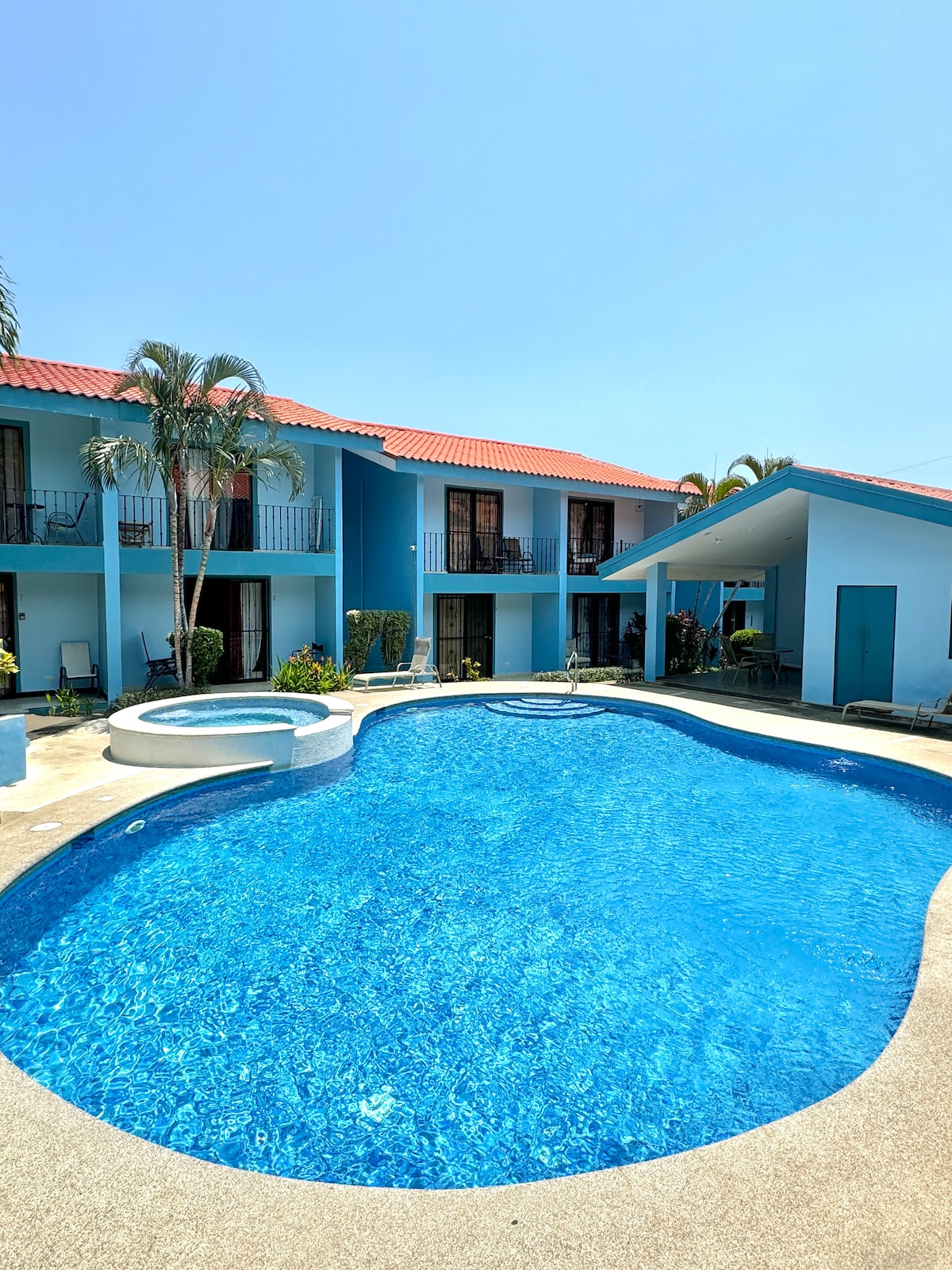 Ħu lill-familja kollha f 'dal-post mill-aqwa b' ħafna spazju biex tieħu gost! 2 sodod, 2 suites tal-banju b 'pixxina u jacuzzi. Ħarsa kbira għad-dell u BBQ! Qrib l-ajruport, xiri fiċ-ċentru tal-belt tal-Liberja u sewqan ta 'malajr lejn uħud mill-aktar bajjiet sbieħ fil-Kosta Rika. Nadif u mibni ġdid, bi kċejjen kbar u l-appliances kollha. Is-suites għandhom arja kkundizzjonata, ilma sħun, ħasil tal-ħwejjeġ, TV bil-cable u internet veloċi u parkeġġ sigur ġewwa l-bieb. Ejja gawdi t-temp sħun is-sena kollha!