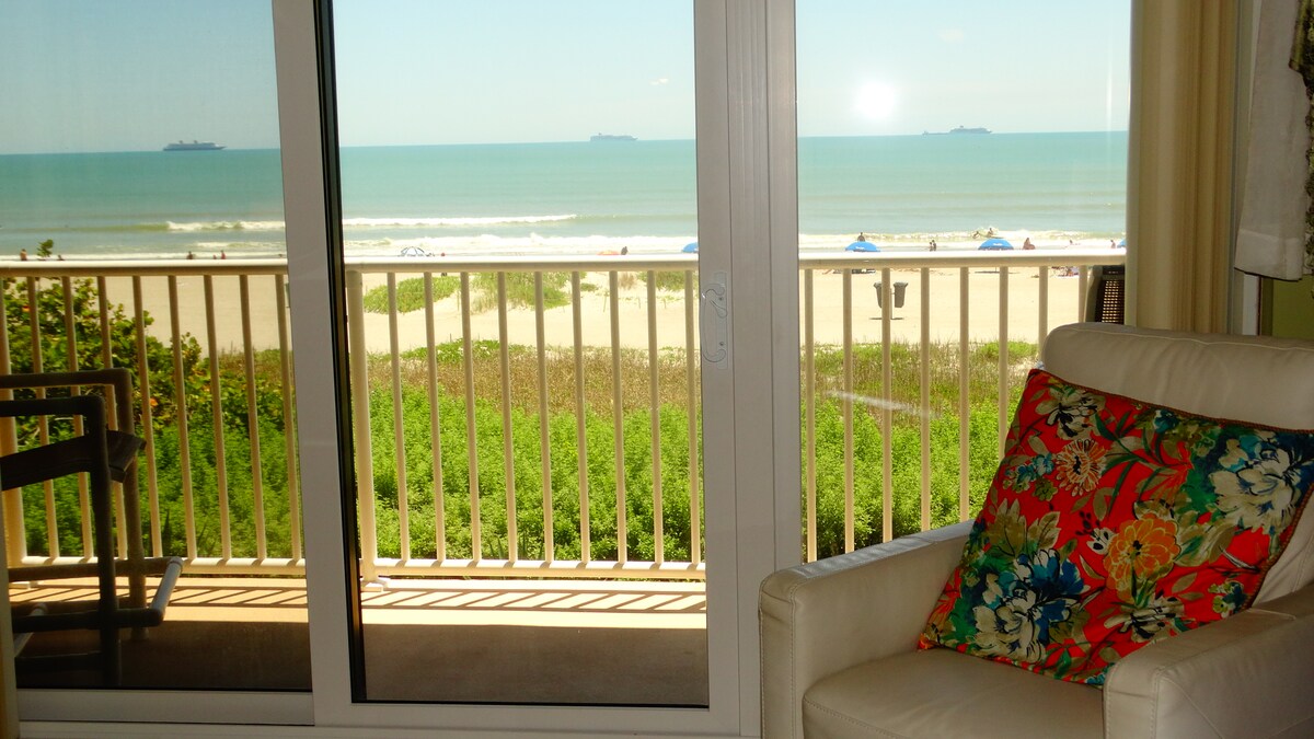 B' appartament DIRETT faċċata tal-oċean tat-3 sular ġewwa ċ-ċentru ❤️ ta' Cocoa Beach, dil-kamra tas-sodda aġġornata b' żewġt ikmamar tal-banju għandha kollox! Veduti tal-oċean minn kważi kull kamra, veduti ta 'nżul ix-xemx taċ-ċentru ta' Cocoa Beach, gallarija mill-isbaħ fejn tista' taqbad tnedija ta' rokit, aċċess għall-bajja ftit passi 'l bogħod, u ħwienet tax-xorb, ristoranti u ħwienet tal-kafè f' distanza bil-mixi! Il-kondominju huwa kompletament mgħammar bl-affarijiet essenzjali kollha u l-bajja ma setgħetx tkun eqreb, saħansitra tista 'tisma' l-mewġ! 🌊