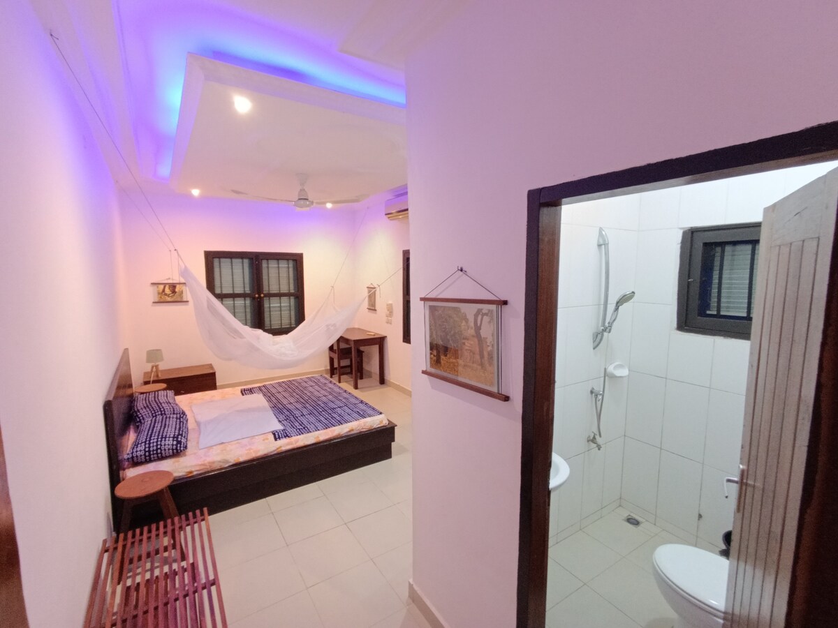 Welcome to your cozy apartment in Agla, just 10–15 minutes from the airport, beach, and Kouhounou Stadium. Enjoy air-conditioning, WiFi, a washer, a full kitchen, and a generator, with a friendly host and concierge to assist you. Some roads may be bumpy in the rainy season, so a 4x4 is a good idea. No security deposits! ELECTRICITY of max 5 kWh/day IS INCLUDED! It's enough for economical use. Need more? No problem, just buy credits at 154FCFA/kWh (the rate set by the company may vary).