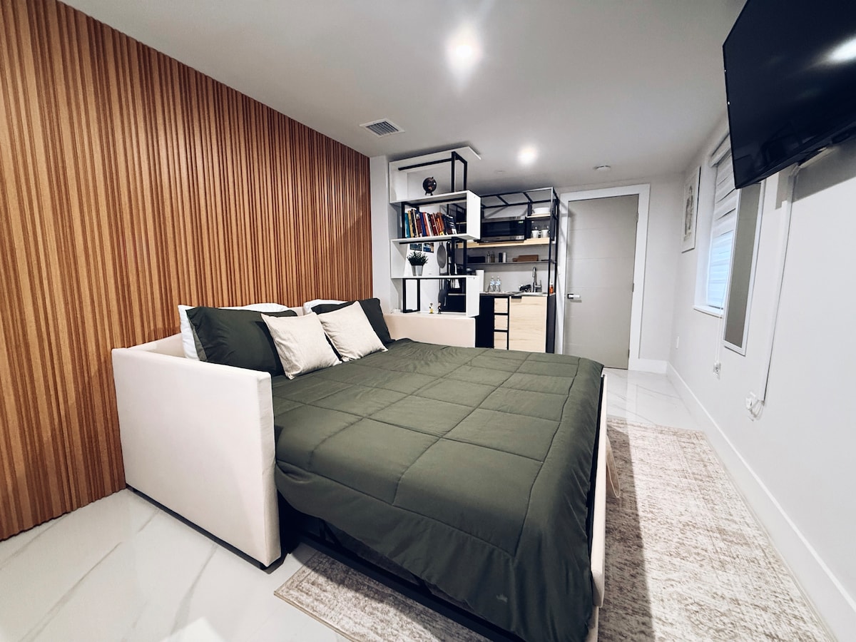 Studio Shenandoah huwa studio tal-livell ta 'fuq b' sodda doppja' queen' u sodda doppja tas-sufan. Kċina kompluta b 'tagħmir tal-istainless steel ideali kemm għal żjarat qosra kif ukoll għal żjarat fit-tul. Se tieħu gost ikollok aċċess għall-aqwa Miami li toffri bil-kumditajiet kollha tad-dar. Nota: Sufan abjad sodda mir-ritratti mibdula Nov ‘22 b' sufan sodda tal-faħam tal-kannol (stampi disponibbli fl-aħħar tal-gallerija)