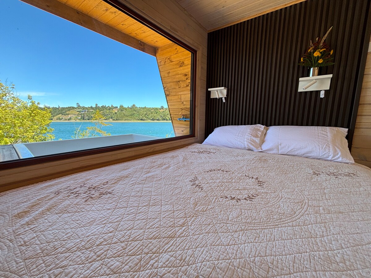 Kabina unika li tħares lejn il-Kanal ta' Chacao, fuq proprjetà privata ta' 6,500 m², fejn il-kampanja u l-oċean jiltaqgħu fi privatezza sħiħa. Għandha aċċess dirett għax-xatt, terrazzini fuq barra fejn tista' tgawdi l-kolazzjon u l-barbecues u ambjent naturali ideali biex tnaqqas ir-ritmu, tistrieħ u tqatta' ftit jiem. Ftit minuti 'l bogħod minn Chacao, b'aċċess faċli bil-karozza, huwa l-post ideali biex tistrieħ u tesplora Chiloé b'ritmu kalm, imdawwar bis-silenzju, in-natura u spazji miftuħa.