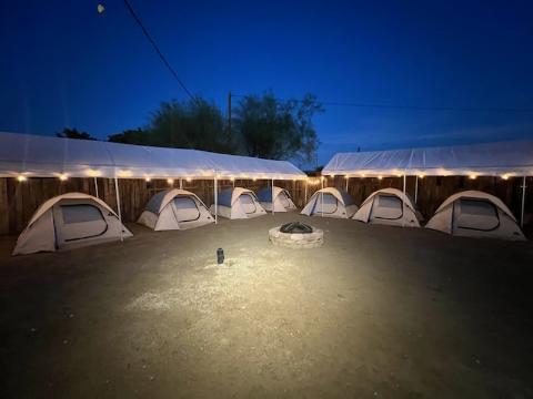 Welcome to the Ultimate Rave Oasis! Immerse yourself in the heart of SoCal Raves at our hip Airbnb. Just a stroll away from front entrance of The Nos Center. No lines, no traffic. We've got you covered with a 3 person tent. Enjoy our 3 brand new restrooms and showers, PLUS a shared kitchen onsite! Customize your space! Bring along your mats, air mattresses, blankets, and pillows for the ultimate comfort experience. Personalize your spot and create a cozy oasis amidst the rave excitement.