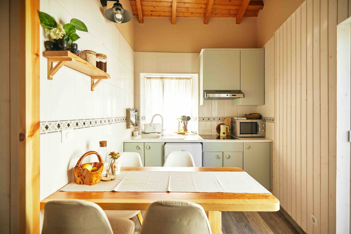 Nuestra relajante y tranquila casa esta situada a 12 km de la entrada de Gijon y 13 de Oviedo En una zona totalmente rural ,tenemos vacas,hórreo, en los exteriores además de la zona de mesa y bancos de debajo del hórreo,tenemos una cocina comedor "l'ayalga"equipada con:vitrocerámica portátil, microondas, nevera, alacena con todo tipo de menaje,agua caliente,fregadero ,mesa y sillas.Todo este equipamiento se puede utilizar también para cocinar en la zona de debajo del horreo. VV2300AS