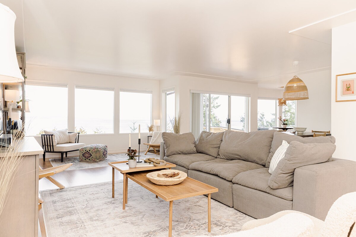 Lesti ruħek biex TIRRILASSA! Din il-propjetà sabiħa għandha VEDUTI IMPRESSJONANTI! DRIFT hija d-destinazzjoni perfetta għal Natura Lovers, Birders u Adventure Seekers. Qum sa Yoga fuq il-gverta jew gawdi s-Sawna elettrika li tagħti fuq il-Baħar. Id-dar ewlenija tagħti lill-klijenti veduti panoramiċi tal-Baħar Salish, Denman, il-Gżejjer Hornby u l-Fanal storiku ta' Chrome Island. Dawwar it-taraġ tul il-foresta tropikali biex tiskopri x-xatt tal-ġebel u l-wir antik fejn tista' taħsad il-gajdri fix-xhur friski.