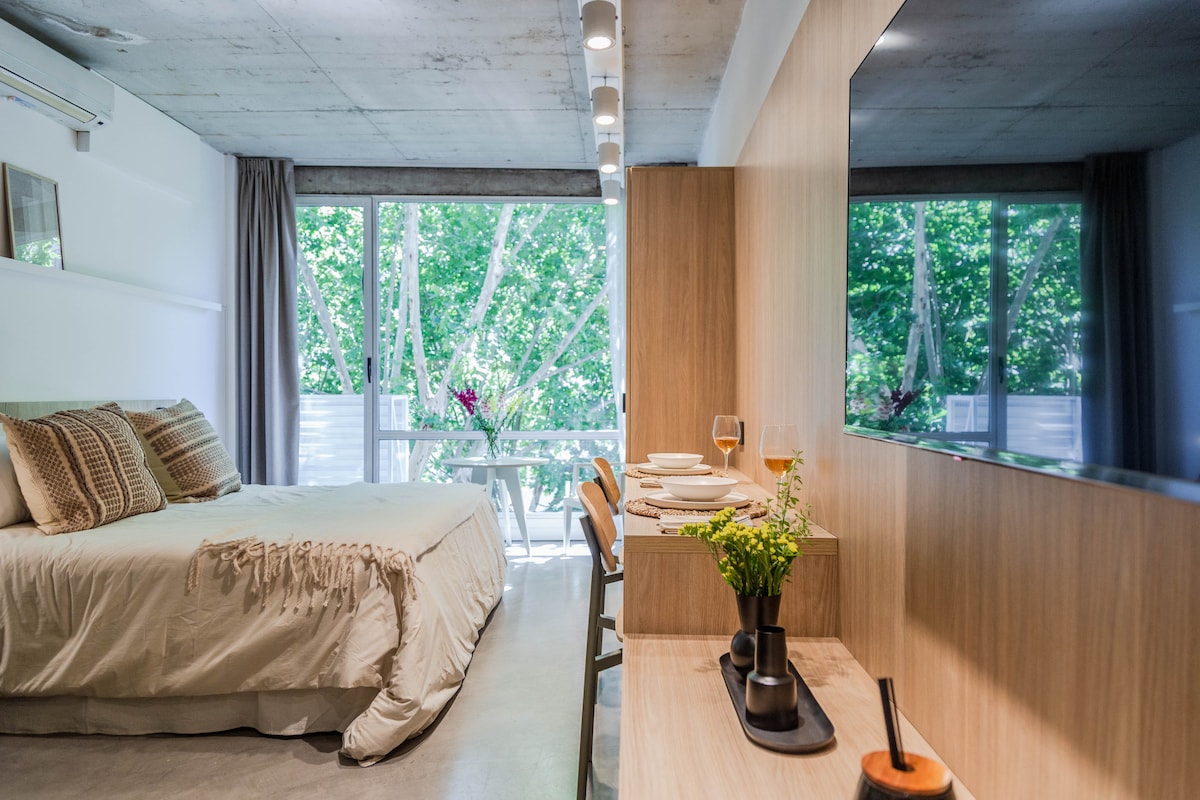 Ubicado en el corazón de Recoleta, este moderno studio para cuatro personas combina confort y estilo en un solo espacio. Totalmente equipado, ofrece un diseño pensado en cada detalle para que disfrutes una estadía única. Ideal tanto para descansar como para trabajar, rodeado de bares, restaurantes y la mejor vida cultural porteña.