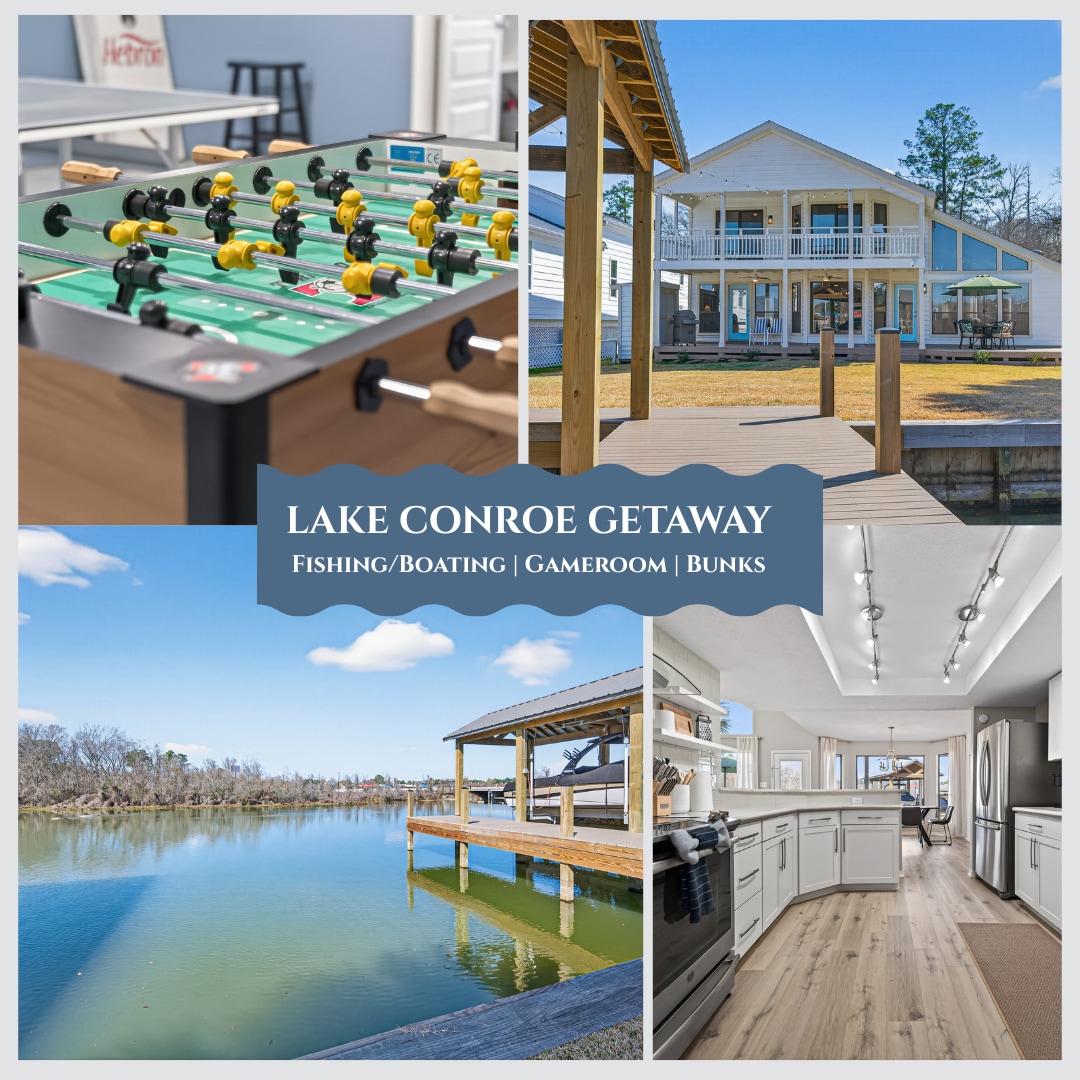 Merħba ġewwa Lake Conroe Retreat! Li toħloq bilanċ perfett bejn eleganza ta' livell għoli u kumdità komda, għamara moderna kkurata u fireplace tal-ġebel li jinqasam matul il-lejla. Kċina gourmet tistieden kolazzjon bil-mod u ikliet ħajjin. Fuq barra, baċir privat estensiv jidħol fl-ilma, ideali għall-imbark fuq paddle ta' filgħodu, għall-għawm ta' wara nofsinhar jew għall-inbid tax-xemx. Il-gverta spazjuża tħares lejn il-kwiet tal-lag-ideali biex tara l-istilel jew tistrieħ bi ktieb u kutra.