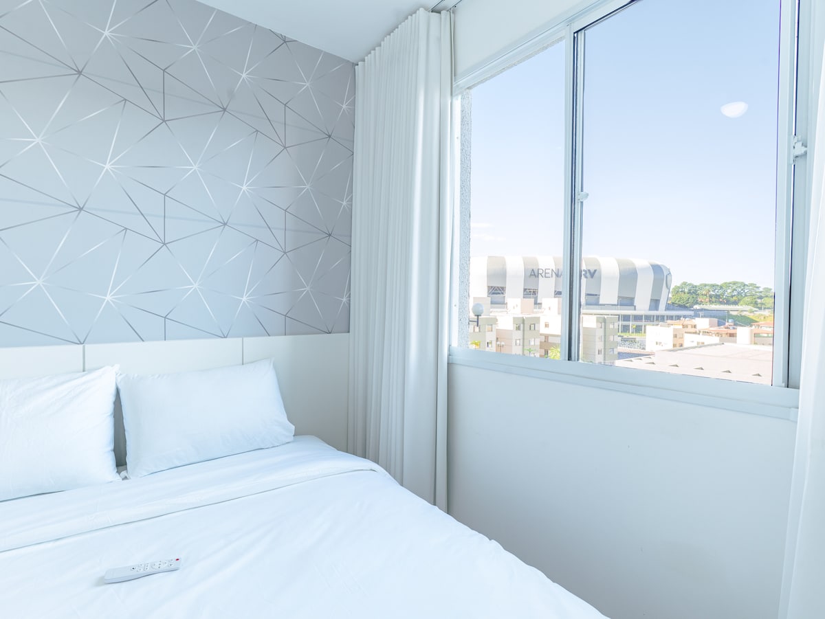Merħba, mistednin! L-appartament tagħna għandu 2 kmamar tas-sodda doppji, salott, kċina u kamra tal-banju, b'kapaċità li jakkomoda sa 4 persuni. Huwa ambjent komdu, li jinsab quddiem l-MRV Arena, perfett għal jiem ta' logħob u avvenimenti. Qrib Shopping Itaú Power. L-aċċess għal Expominas huwa faċilitat mill-istazzjon eldorado. Il-kċina tagħna mgħammra u t-twieqi għandhom il-grilji biex niżguraw is-sigurtà tat-tfal. Ġib lill-familja tiegħek u ħossok komdu.