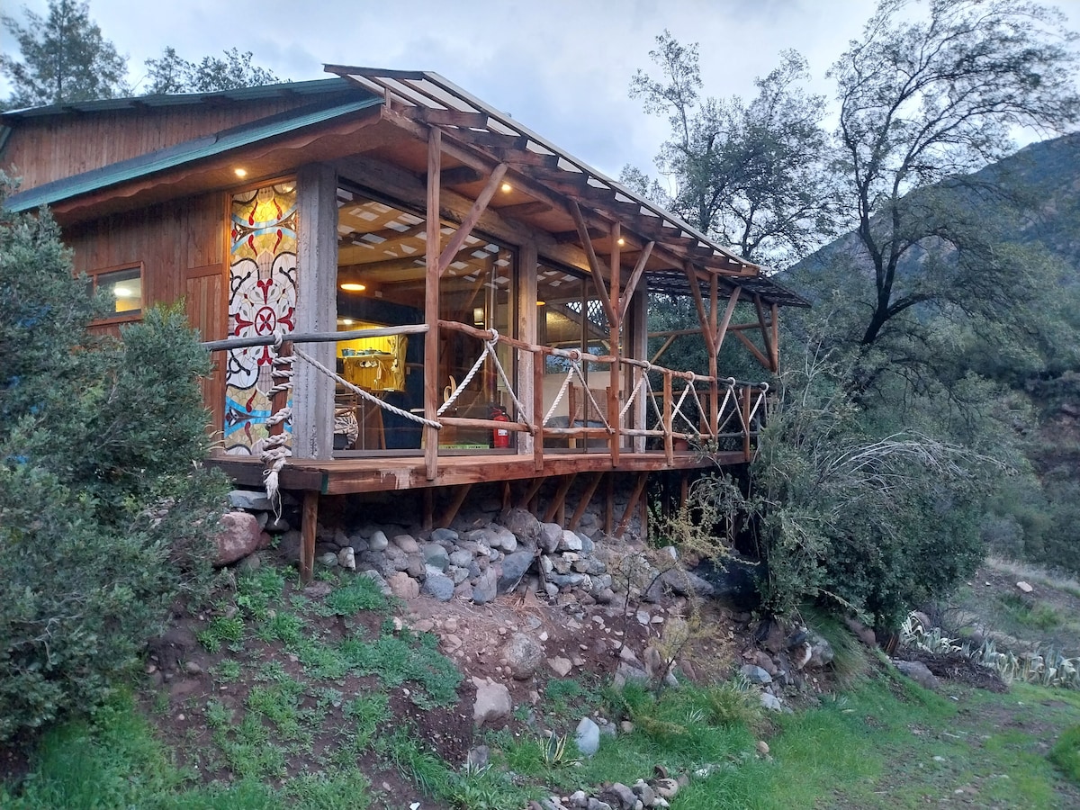 Żewġ kabini li jinsabu f' ambjent privileġġat, settur kwiet,imdawra b' veduti sbieħ, arja pura, ritmu serju ideali biex tiskonnettja,tistrieħ u tipprattika rilassament jew attivitajiet tat-turiżmu. Il-kabana għandha kamra tas-sodda,kamra tal-banju, kċina tal-ikel u terrazzin tal-gazzebo. Hemm post fejn tipparkja u tqabbad il-wifi tal-5G. Qegħdin fi triqna lejn Mirador de Condores, Maitenes,Alfalfal u oħrajn. Attrazzjonijiet: Kabina esklussiva,imdawra bin-natura. Faċilitatur tal-host Chi Kung terapista.