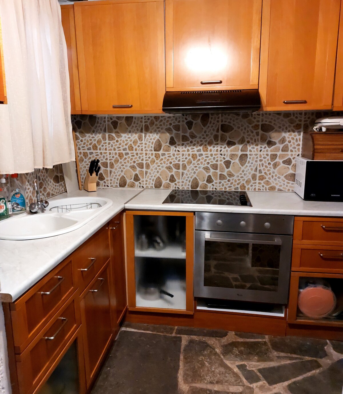 Country Stone House b 'cooker tal-injam kbir restawrat fl-2014. Toffri bitħa privata kbira b 'forn tal-injam tan-nar tal-ġebel u barbikju. Agħti titwila lejn il-kantina fejn jinżammu għodod rurali qodma u barmil bl-inbid aħmar famuż lokali 'agiorgitiko'.