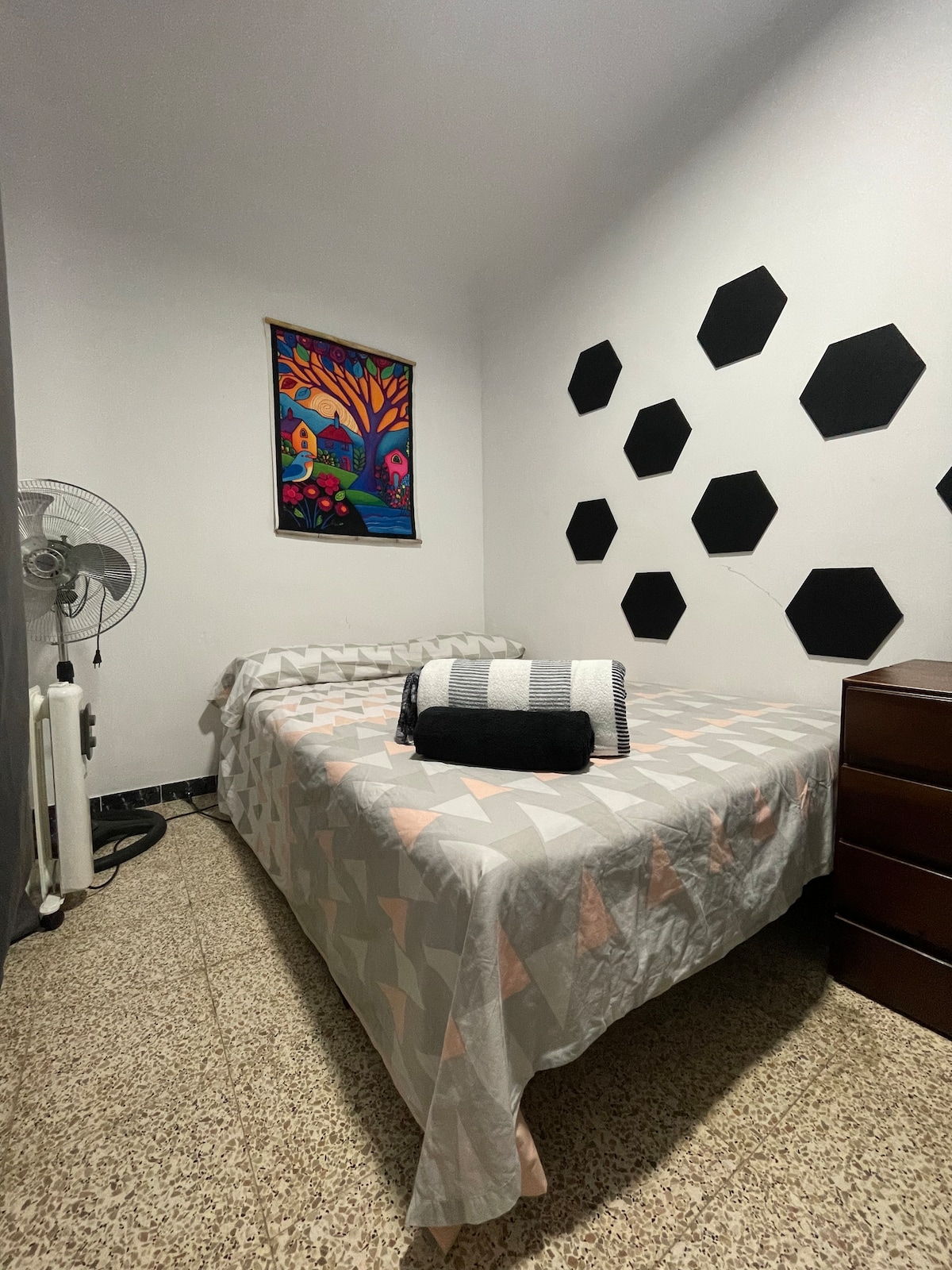 Ideal parejas. Habitación de matrimonio y habitación individual. A 25' centro de Barcelona en metro Entrada autónoma. Todo exterior, muy luminoso Zona tranquila Baño completo con ducha. Cocina equipada. Comedor-sala de estar, TV con aplicaciones de plataformas. Sofá muy confortable, reclinable. Aire acondicionado portàtil y ventiladores en los dormitorios. Debemos obtener los datos de los documentos de identidad de los huéspedes para cumplimentar el registro de entrada (como los hoteles).
