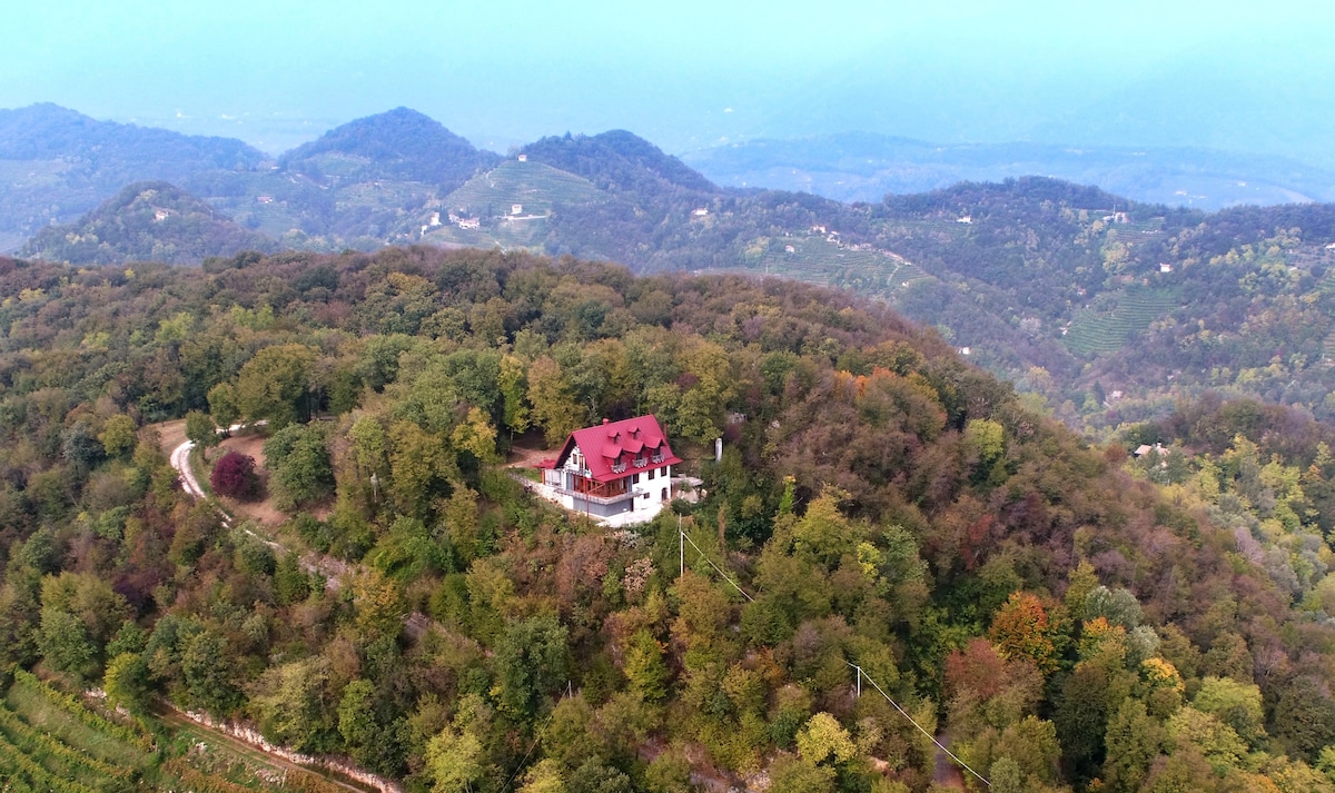 Merħba fl-oażi tal-paċi tagħna mdawra bil-ħaxix imħaddna minn vinji fil-qalba tal-Prosecco Superiore Docg Coneg Conegliano Valdobbiadene Hills b' veduti mill-isbaħ tal-wied biss 15 km miċ-ċentru ta' Conegliano u 10 minuti mid-daħla tal-awtostrada. Il-post perfett għal vaganza rilassanti lussuża bil-kumditajiet kollha li tista' tixtieq filwaqt li tgawdi privatezza mill-aqwa, m' għandniex ġirien, in-natura biss se żżomm lilek innifsek matul iż-żjarat tiegħek. Post ideali għall-gruppi.