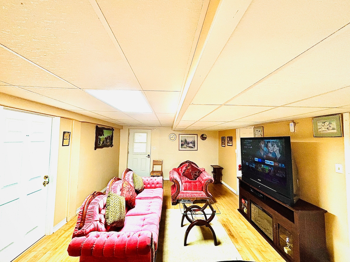 Super spazjuż 2 kmamar tas-sodda u 2 banjijiet 'il fuq! Is-sufan 'il barra mid-daqs ta' queen ġewwa Salott. Kċina kbira bl-appliances kollha, magna tal-kafè K Cup, magna tal-ħasil u dryer f' unità u armarji kbar. Żewġ kmamar tal-banju sħaħ u żona tal-ikel kbira. Is-salott għandu ħafna postijiet fejn toqgħod bilqiegħda u smart tv f 'kull kamra. L-internet u l-kejbil huma pprovduti. Irrilassa u gawdi ż-żjara tiegħek magħna! Din hija UNITÀ MINGĦAJR TIPJIP!