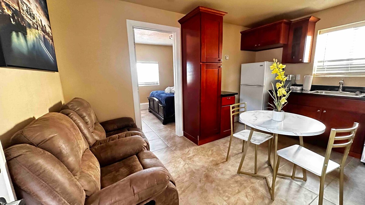 Appartament ta' studio bi kċina mgħammra b' kollox, countertops tal-granit, doċċa, vanità, wifi u TV. Sodda queen u sufan futon mitwi. 25-30 minuta mill-Peniżola ta' Monterey, Carmel u Carmel Valley. Ħafna fabbriki tal-inbid fl-apellations ta' Santa Lucia Highlands u Carmel Valley. 10 minuti sa Mountain biking f' Fort Ord National Monument, id-dar ta' Laguna Seca Raceway u l-Baħar Otter Classic. 40 minuta sewqan sa Pinnacles National Monument. 10 minuti mixi sa mużew ta' Steinbeck u oldtown Salinas.