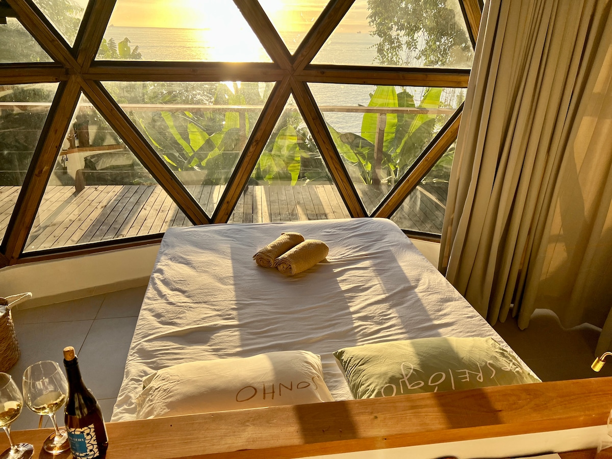 Gawdi mumenti maġiċi u rilassanti fid-Dome tagħna. Domo São Jorge, li jinsab fin-Nofsinhar tal-gżira, 10 minuti 'l bogħod mill-bajja ta' Curral, huwa wieħed mill-uniċi li jagħti fuq il-baħar fil-Brażil. Hawnhekk, il-kumdità u r-romantiżmu jingħaqdu flimkien f' xenarju impressjonanti, ideali biex toħloq memorji. Tagħmir b' sodda qies queen, arja kkundizzjonata, Smart TV u wifi. Kċina funzjonali, b' cooker tal-induzzjoni, minibar u magna tal-kafè. Minbarra spazju perfett għall-ikliet jew biex taħdem fost il-kwiet