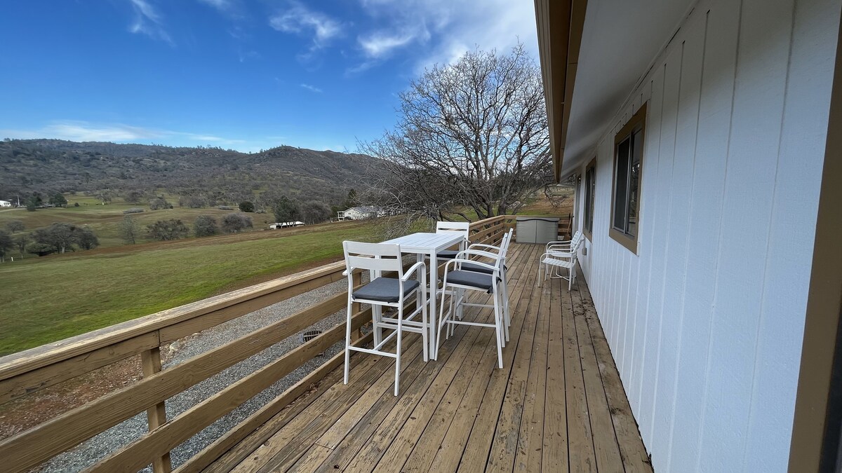 Fi Sierra Foothills, 45 minuta sa Yosemite. ħdejn McClure Lake u Don Pedro. Super kbira għall-klieb u t-tfal!! Il-prezz bażi huwa għal 6 klijenti, $ 250-350(xitwa/sajf) kull lejl, $ 35 iktar kull lejl għal kull persuna. 3 klieb (u qtates) huma inklużi. Tkellem magħna jekk għandek iktar. 3 kmamar tas-sodda, banju 3.5. Tkellem magħna għal gruppi ikbar. 2200' elevazzjoni. 4WD mhux meħtieġa. Sajf- 85-100 grad. Xitwa 35-55. Użu privat - 5 ettari. Gruppi ikbar huma merħba. Nies li qed jiċċaqalqu min-nirien b' iktar pets milqugħa!