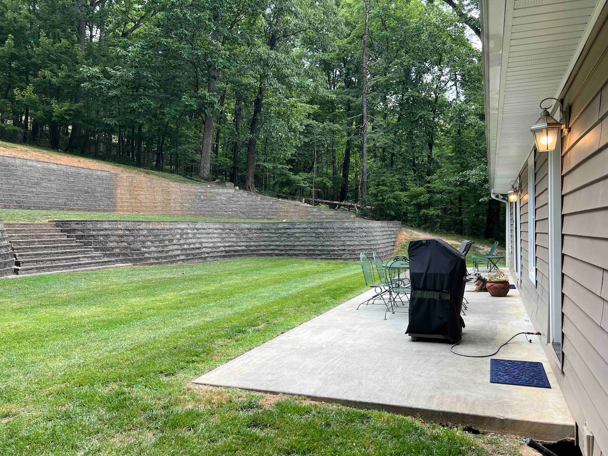Right next I-81. The apartment actually is in-law suite consists of one bedroom, full bath, kitchenette, and smart TV. It also has its own private access, patio and generous parking area. To reach airport in 10 mins. Exploring the downtown Roanoke and Main Street of Salem in short distance too. Hollins Univ. and Roanoke College are both around 4 miles away. The ducks and chickens stroll around and deer visit too. Kick back and relax in this cozy, quiet and stylish space in the woods.
