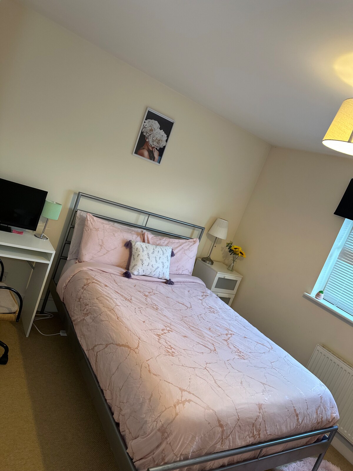 We live on the edge of the beautiful conservation village of Colinton. Although it is still known as a village, it is a suburb of Edinburgh and is a 30-minute journey by bus to the city centre. The room is very cosy and comfortable with a view to the back garden. There is a modern shower room next door. This is shared with 2 other people. The room has a double bed, a desk and chair, a built-in cupboard with lots of hanging space and a chest of drawers.