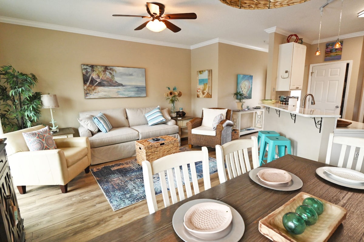 Merħba f 'Paradise! Tinsab fis-sular t' isfel ta 'Luau II, f' Sandestin Golf u Beach Resort® DIN l-unità tal-pool toffri veduti impressjonanti tal-premju rebbieħa ta '4300 pied kwadru. Pixxina tal-laguna b 'kaskata tal-għawm. Ukoll id-dekor tal-kosta u mgħammar b 'TV intelliġenti ta' 65"fiż-żona tal-għixien u l-kamra tas-sodda. Passi biss 'il bogħod mill-bajja u ftit minuti sa ristoranti, xiri, golf, tennis u attrazzjonijiet oħra inkluż Baytowne Wharf. Servizz konvenjenti tat-Tramm inkluż. Id-dar tiegħek ġewwa Paradise qed tistenna!