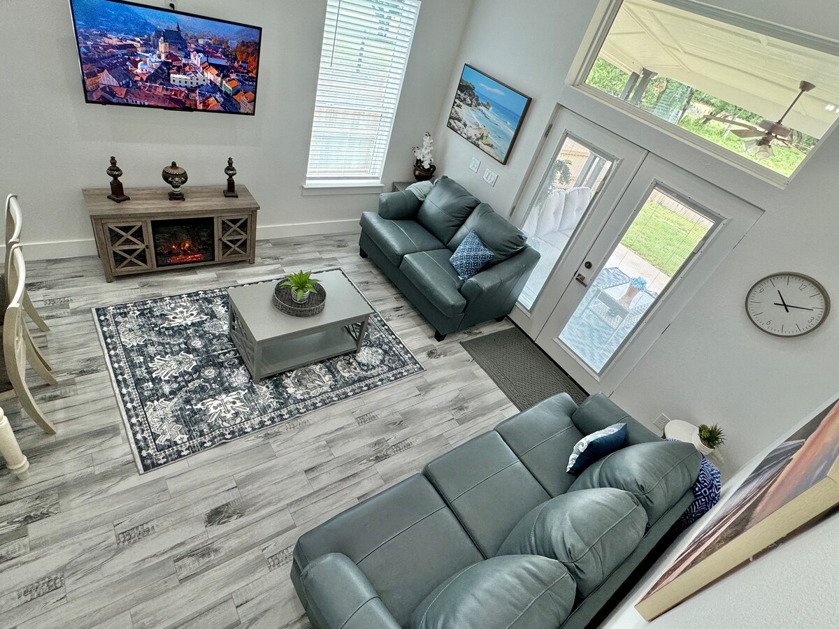 Dil-kamra tal-vaganzi b' żewġt ikmamar tas-sodda mibnija dan l-aħħar f' San Antonio hija l-bażi ideali għal vaganza rilassanti mal-familja jew mal-ħbieb! Din id-dar għandha ċċarġjar BLA ĦLAS ta' Level-2 EV (CCS), tliet Smart TVs u kċina mgħammra b' kollox. Duq il-kafè tiegħek mill-gverta u gawdi l-veduti tal-lag u tal-ġnien tal-plumerija. Qatta' l-ħin tiegħek fuq il-mogħdijiet lokali qabel tmur għax-xiri/żjarat turistiċi. Jekk jogħġbok żomm f' moħħok: Din il-propjetà tinsab fit-tieni sular u teħtieġ taraġ biex taċċessaha.