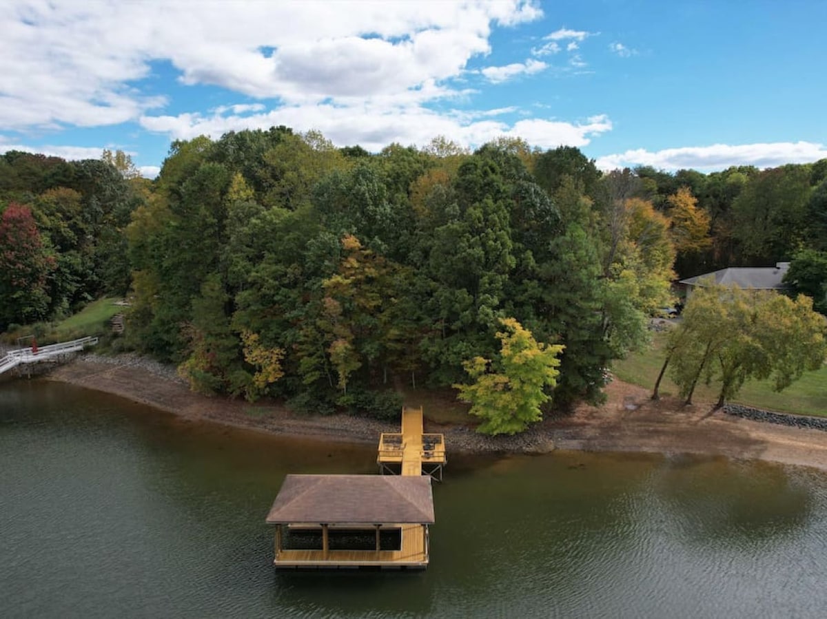 Water surrounds you on this picturesque peninsula. Enjoy an expansive deck overlooking your private boat dock 2 Bedrooms 1 Bathroom Bedroom 1 (Queen Bed) Bedroom 2 (Queen over Queen bunkbed) Shared Spaces 1 Queen double tall self-inflating air mattress Full Kitchen Granite Countertops Stainless Appliances Full Bathroom with step-in shower This is where you want to be on Lake Norman. Queen's Landing The Landing Restaurant 10 mins to Costco 30 mins to Downtown Charlotte