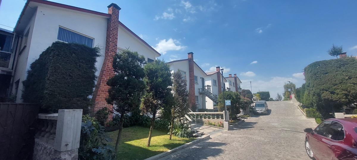SUITE tal-foresta komda, veduti tan-natura, vulkani, belt, sema. Maġija tal-muntanji. Ċmieni. Irrilassa u gawdi f' ambjent sigur, 1100m fuq il-Belt tal-Messiku. 40 minuta mill-Interlomas u Toluca. Ideali għall-vaganza tal-imħabba, tal-familja jew tal-ħbieb. Ispira ruħek, mixja fit-tul, xogħlijiet tad-dar jew akklimatizza mal-altitudni għal kompetizzjoni. Ħdejn l-għoljiet tax-xemx. Żona tad-djar tal-kampanja b' sorveljanza, qrib awtostrada ġdida. Salott, fireplace, kamra tal-ikel, kċina żgħira, 2 kmamar tas-sodda, 2 kmamar tal-banju, ilma sħun, grill, skrin, Wi-fi.
