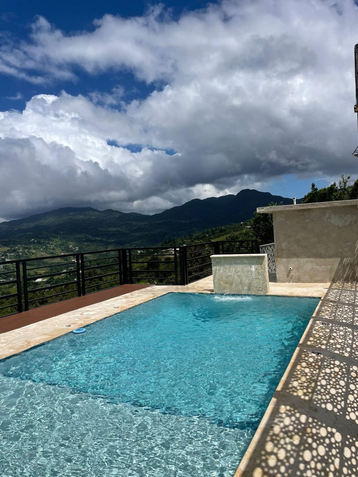 Enjoy our beautiful home with panoramic views, privacy and comfort. An infinity pool. ( heated year around at 85 degrees)Brand new kitchen and furnishings. We are only 35 minutes from the airport and 45 minutes to the heart of old San Juan. Enjoy bird watching surrounded by nature. Our home has AC in the common areas and bedrooms. We have a water backup system and solar panels with a Tesla battery. No Uber service, car rental is necessarry.