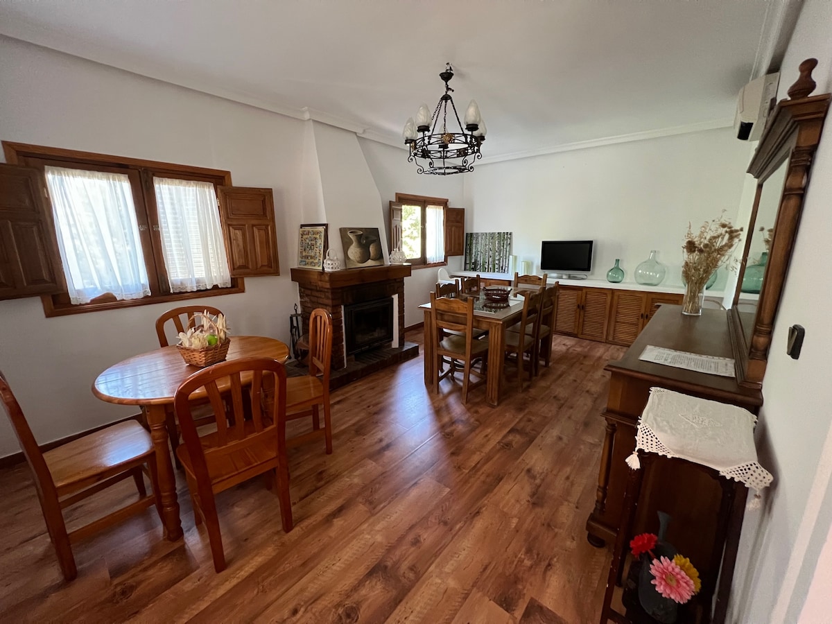 Chalet completo en La Alcarria para hasta 12 personas, a solo 1 hora de Madrid. Parcela privada de 2.700 m² con piscina de junio a septiembre, barbacoa, chimenea, terraza con vistas y sala de juegos. 4 dormitorios, 2 baños y más de 250 m². Wifi. Pista de pádel, parque infantil y canchas de fútbol y baloncesto de uso libre a 5 minutos andando. Ideal para familias con niños y grupos que buscan naturaleza, privacidad y diversión interior y exterior en cualquier época del año.