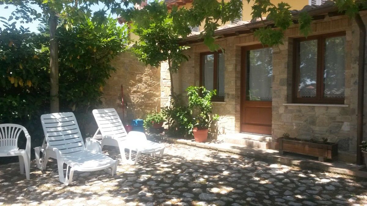 Piccolo e confortevole appartamento per 2 persone arredato in stile toscano e con travi a vista,immerso tra le dolci colline della campagna toscana. A disposizione degli ospiti spazio esterno con tavolo,piscina condivisa,forno a legna e barbecue,piccola lavanderia,wi-fi. L'appartamento è stato ricavato da una graziosa casa colonica in pietra del 1800 recentemente ristrutturata secondo la tradizione toscana e suddivisa in tre comodi appartamenti